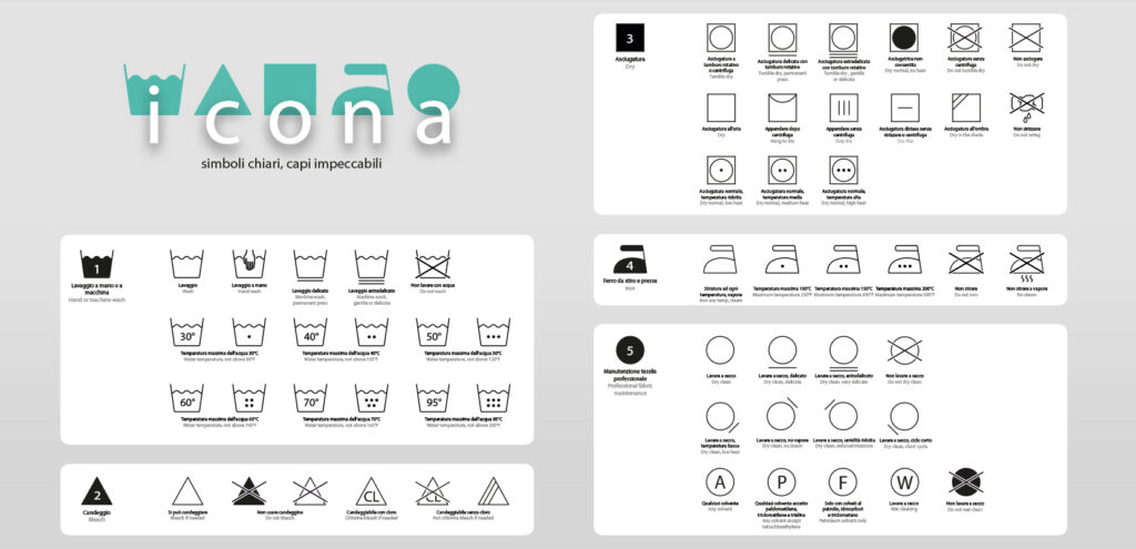 ICONA nasce con l’obiettivo di rendere immediata la comprensione di tutti i simboli di lavaggio e delle istruzioni per la cura dei tessuti presenti su ogni capo d’abbigliamento.
